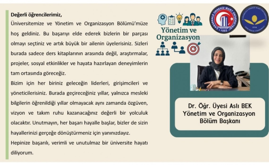 Çanakkale Onsekiz Mart ÜniversitesiYÖNETİM ve ORGANİZASYON BÖLÜMÜ İŞLETME YÖNETİMİ PROGRAMI - LOJİSTİK PROGRAMI